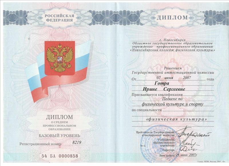 | Диплом педагога по физической культуре и спорту | г.Новосибирск Областное государственное образовательное учреждение профессионального образования "Новосибирский колледж физической культуры" | 07.06.2007 | Файл |